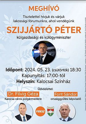 Csütörtök este Kalocsán tartott lakossági fórumot Szijjártó Péter – adja hírül a Telex. Az eseményt nyilvánosan hirdették meg a helyi médiában, viszont miután a Telex munkatársai (egy riporter és egy operatőr) odaértek, a szervezők úgy döntöttek, mégsem sajtónyilvános a dolog. Azaz csak a „meghívott sajtó” mehet be, a Telex stábja nem.