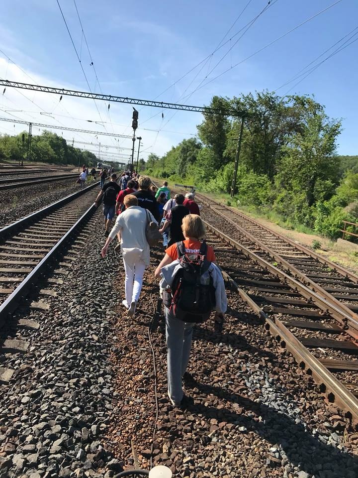 Egyelőre semmi konkrétum sem tudható az okokról, vélhetően az történt, hogy valami felpattant a pályáról és a szerelvény mozgó alkatrészében akkora kárt tett, hogy az tovább rombolta a Flirtöt. A vonat Szárliget bejárata közelében állt meg, az utasok a sínek között gyalogoltak be a vonatról. Nagyon kíváncsian várjuk a vizsgálatok eredményét, nem mindennap történik ilyen drasztikus baleset. (A képen: a szerelvény utasai a vasúti fáővonal sínőárjai között gyalogolnak a legközelebbi állomásra)