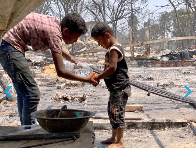 Elképesztő gyorsasággal terjedt el hétfőn a tűz a Banglades délkeleti részén, a Bengáli-öböl partján fekvő Cox’s Bazaar város közelében lévő Balukhali menekülttáborban. A fából tákolt épületekből álló tábor annak a sok százezer rohingya menekültnek szolgál otthonául, akinek 2017-ben kellett elhagynia a hazáját, Mianmart, mert a helyi hadsereg brutális etnikai tisztogatásba kezdett a népcsoport ellen. (A nyitó képen: a tízéves Rezwan sokkos állapotba került, látva egykori otthona romjait. Családja egyszer már mindenét elveszítette, most újra földönfutóvá váltak szülők, gyerekek egyaránt.)