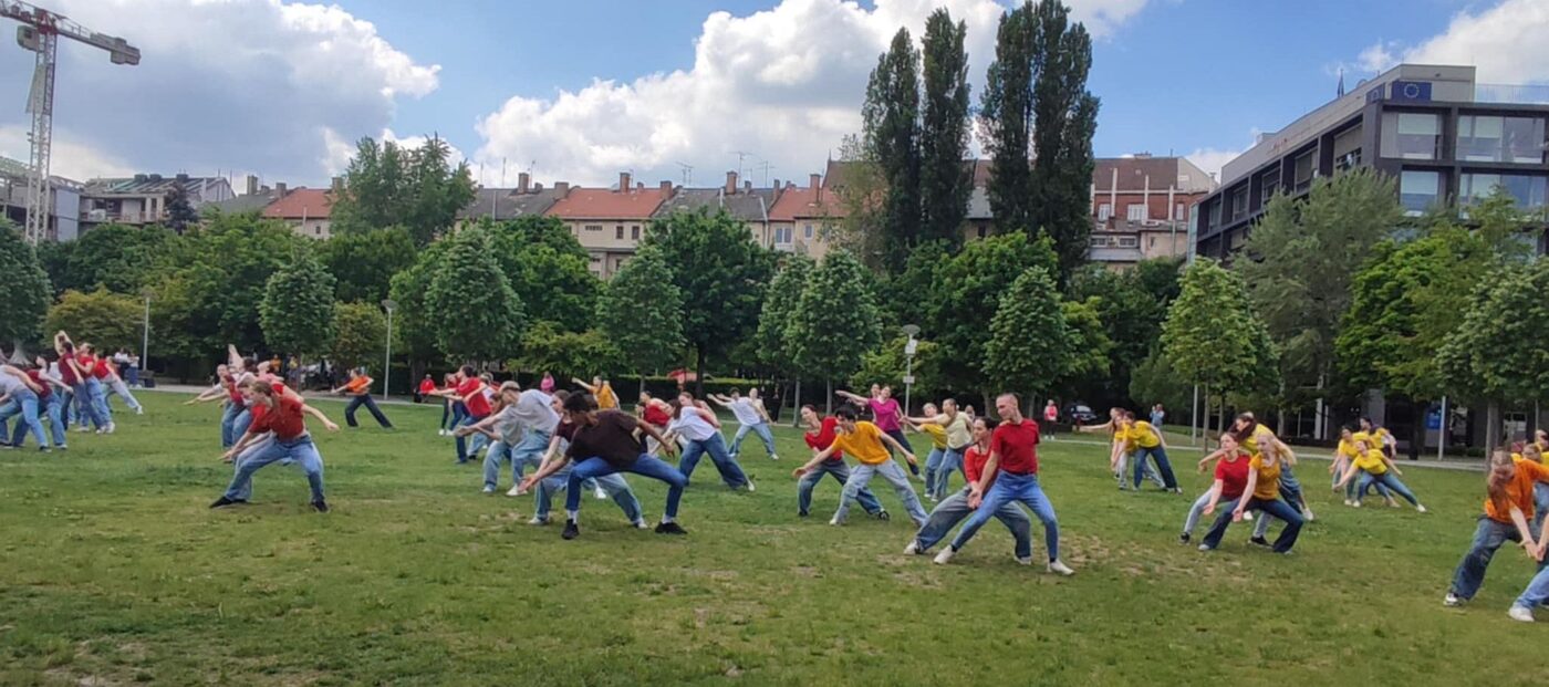 a Táncszínház előtti füves téren: mintegy 150 fiatal táncos adta elő a Karöltve című közös koreográfiát, amelyet a magyar táncélet meghatározó alkotói – Bozsik Yvette, Juronics Tamás, Topolánszky Tamás, Velekei László és Vincze Balázs – készítettek.