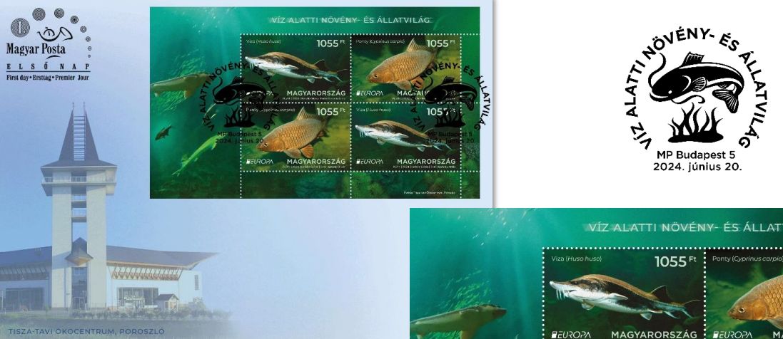 Az alkalmi bélyegkisív kétféle címletének fő eleme egy viza és egy ponty, a keretrajzon pedig a vízi növényvilág alkotta montázson kívül még további halak szerepelnek. A kapcsolódó borítékon a Tisza-tavi Ökocentrum főépülete látható. Az elsőnapi bélyegzésű alkalmi boríték bélyegzőlenyomatán egy harcsa és a vízi növényzet alkotta stilizált kompozíció szerepel.