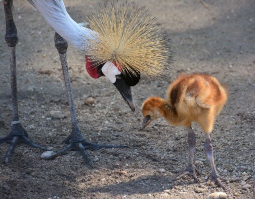 Fiókaáldás volt a koronásdarvaknál a Fővárosi Állat- és Növénykertben. Ezúttal három trónörökössel gyarapodott a dinasztia. Az utódok július legvégén keltek ki a tojásból és most már zavartalanul meg lehet őket szemlélni. Az apróságok nemcsak méretüket, hanem színüket tekintve is különböznek a felnőtt állatoktól. Tollazatuk pihés, vörösesbarna, illetve zsömleszínű, és a felnőttekre jellemző karcsú lábak helyett tömzsi lábakon szaladgálnak. A fejükön pedig még semmi nyoma az aranyszínű tollkoronának, amelyről egyébként a faj a nevét kapta.
