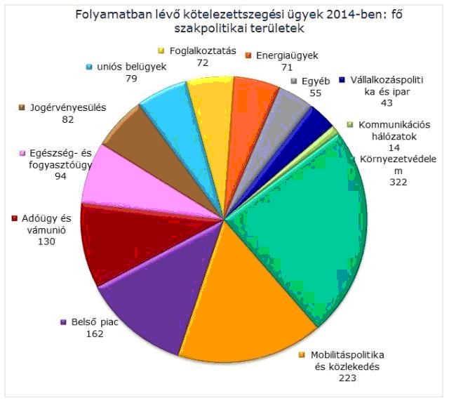 Tavaly az előző évhez hasonlóan továbbra is a környezetvédelem, a közlekedés, valamint a belső piac és szolgáltatás szakpolitikai területeken indult a legtöbb kötelezettségszegési eljárás.