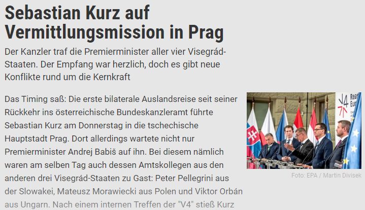 Sebastian Kurz osztrák kancellár közvetítő misszióra vállalkozott Prágában, ahol találkozott a visegrádi országok miniszterelnökeivel. A fogadtatás szívélyes volt, ám az atomenergiát illetően új konfliktusok keletkeztek – állapítja meg elemzésében az osztrák Der Standard.